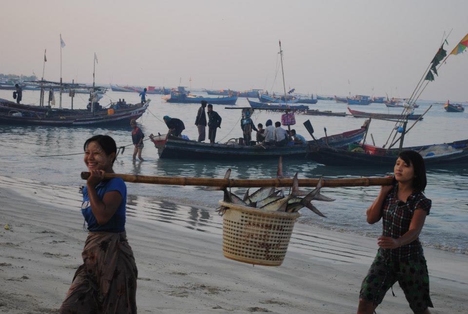 Going through these photos now, first one sees 2 ladies carrying a pole with some fishing in between them. Uhm, are they related? I don’t know they look Like maybe they could be. the one at the front,Really super happy. The one at the back who’s just staring at the back of her head Looks like she’s not having the funnest of times. Clearly they’re at work.